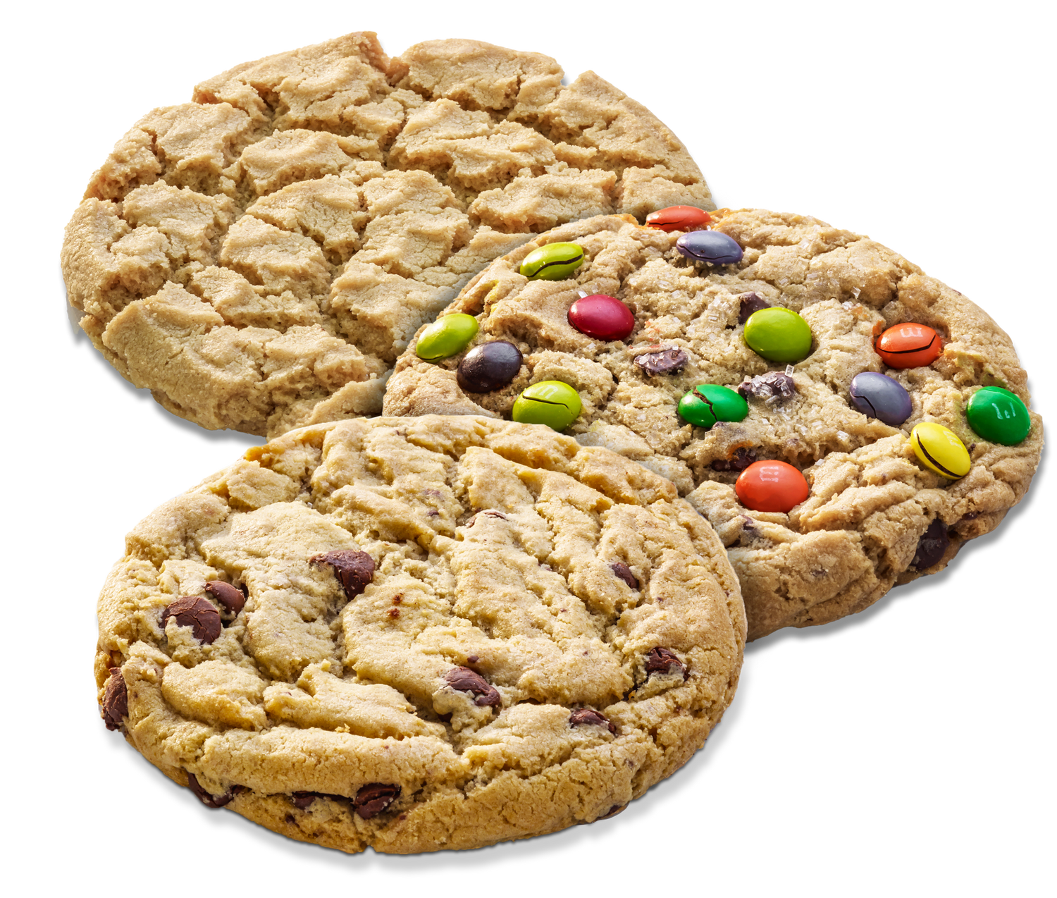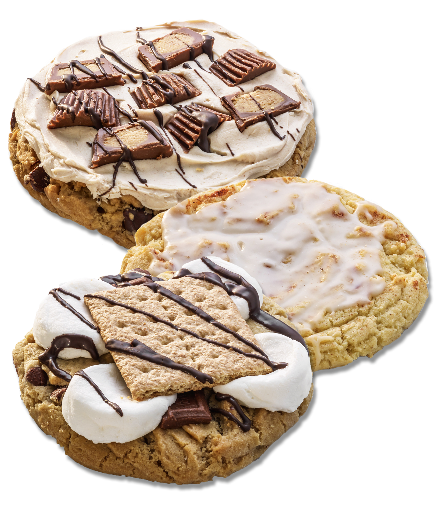 You won't want to resist the delicious aroma pulling you down the street to one of our cookie stores. Staffed with cookie lovers, all eleven of our locations are ready to brighten your day. Enjoy any of a variety of tasty treats, including edible cookie dough and scrumptious mountain-sized cookies and brownies, or create your very own ice cream-filled cookie!